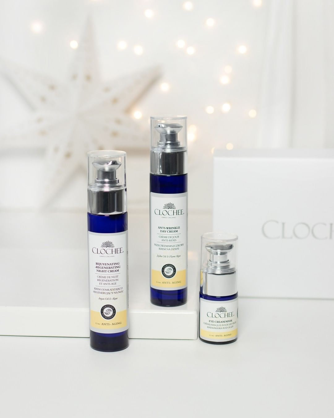 Dagkräm, Nattkräm och ögonkräm som återfuktar, ger näring och förbättrar hudens densitet.