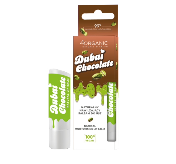 Ett naturligt, återfuktande läppbalsam med dubaichokladarom som intensivt återfuktar, jämnar ut och återställer komfort till nariga och irriterade läppar. Den skyddar mot torrhet och lämnar läpparna mjuka och naturligt strålande. Dess rika formel, baserad på avokadoolja, kakaosmör och pistageolja, ger djup vård och näring.